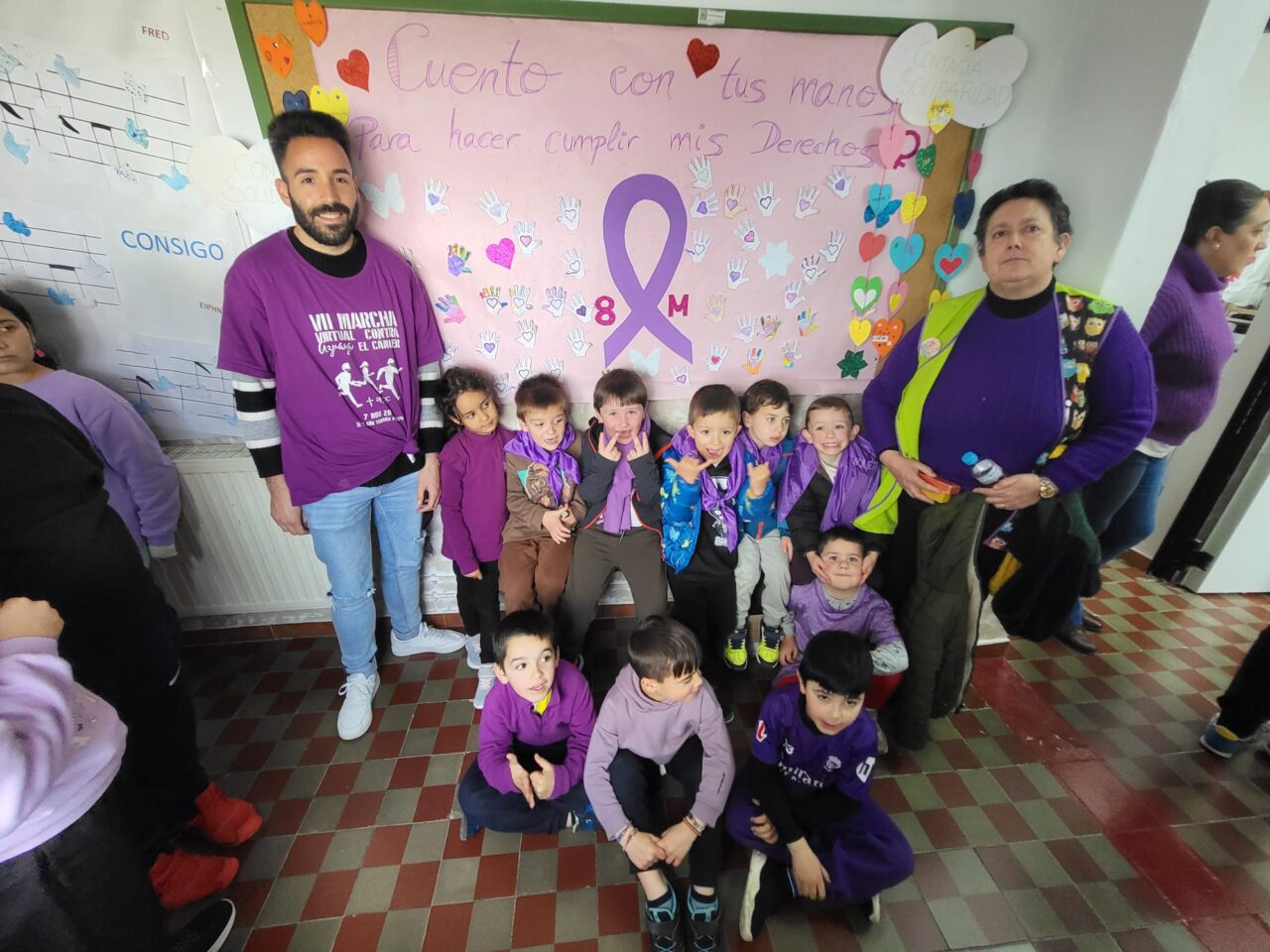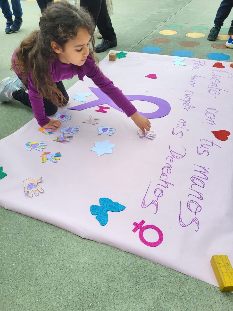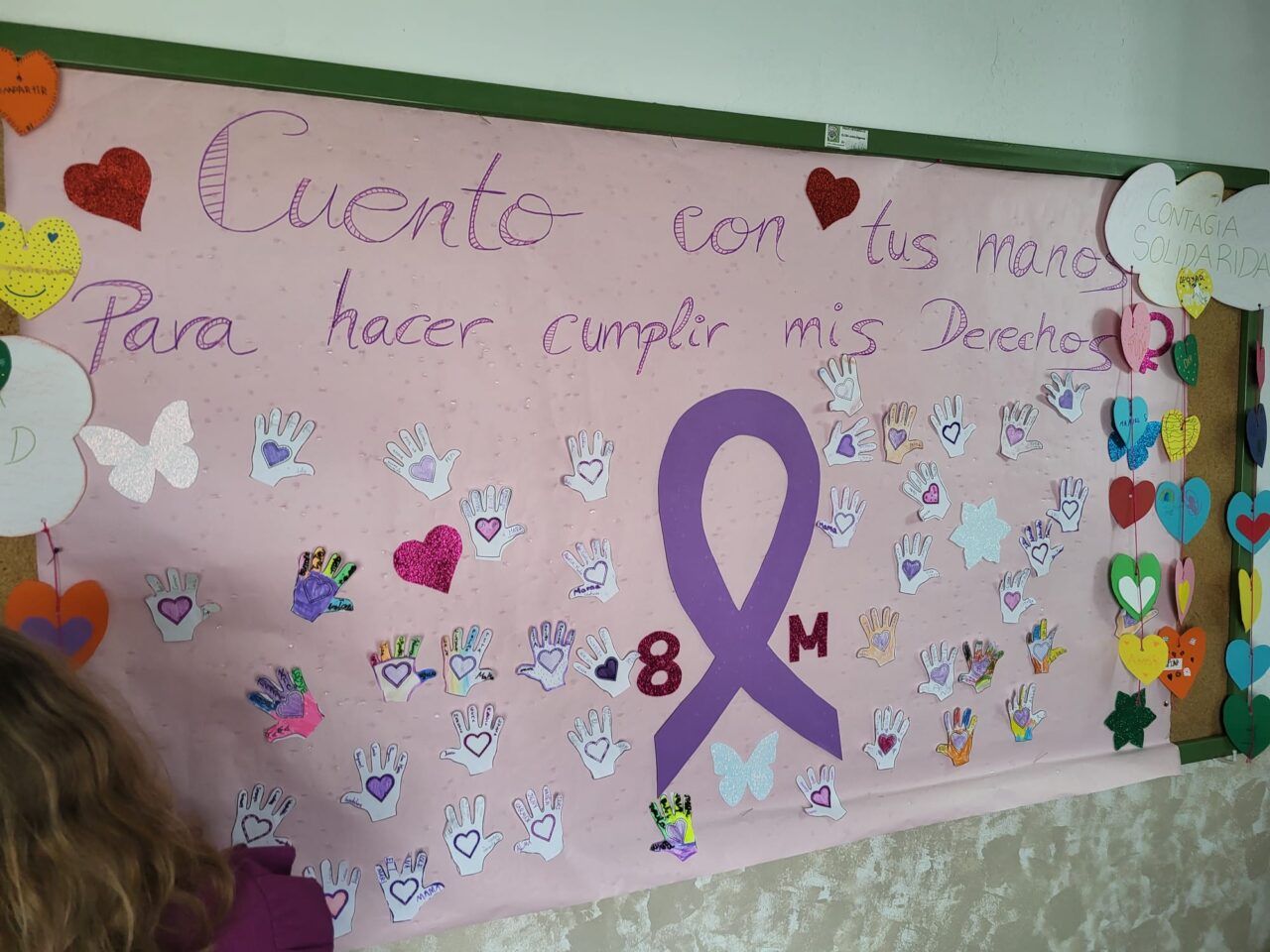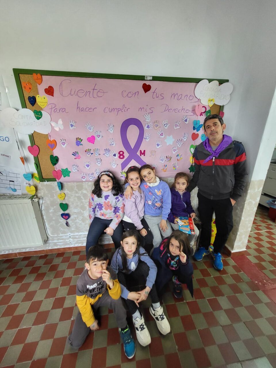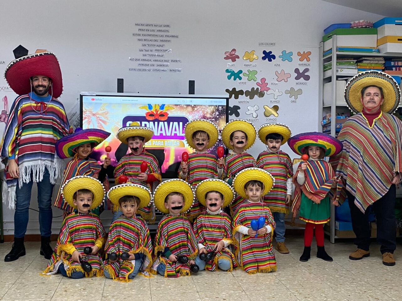 Este año hemos realizado un cartel con el lema «Construimos Juntos» donde hemos puesto unos «ladrillos» elaborados por los alumnos, formando un corazón y que llevaban escritas palabras como: TEAmo, TEAdoro, TEAdmiro…