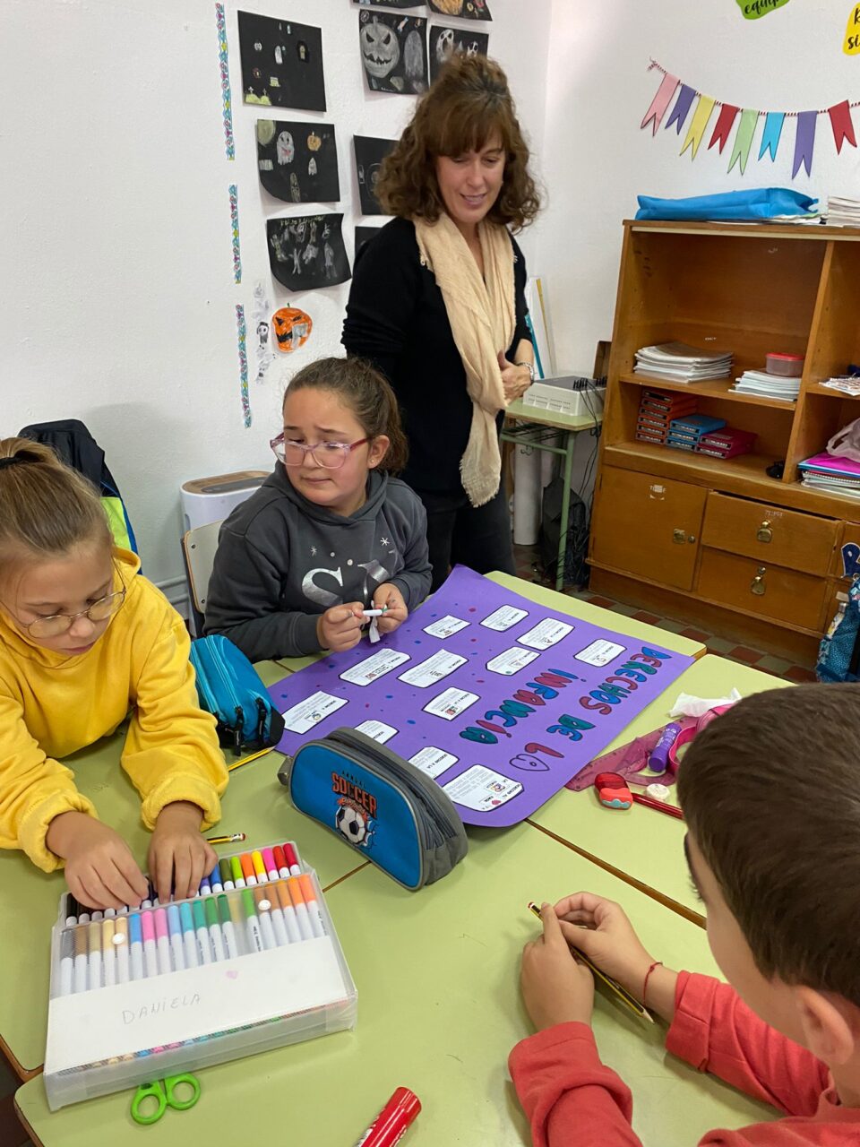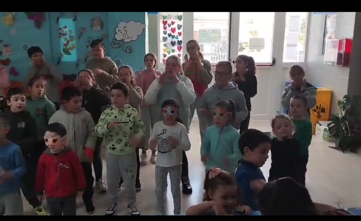 En nuestro centro lo hemos conmemorado realizando un mural que lleva por título «Sinfonía por la Paz». En él nuestros alumnos han pegado unas manitas en las alas que acompañan a la clave de sol y unas palomas en el pentagrama, haciendo alusión al título del mural.